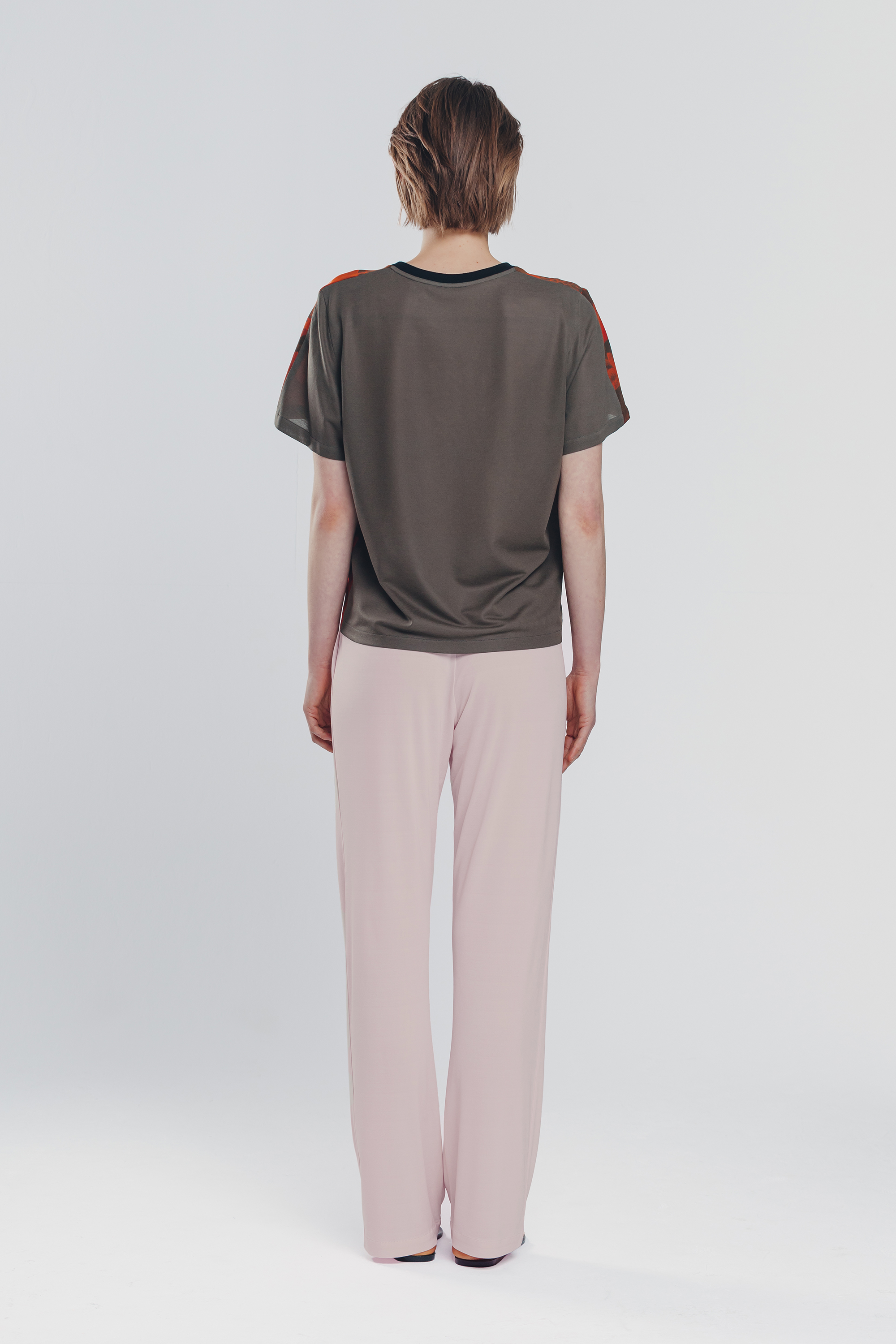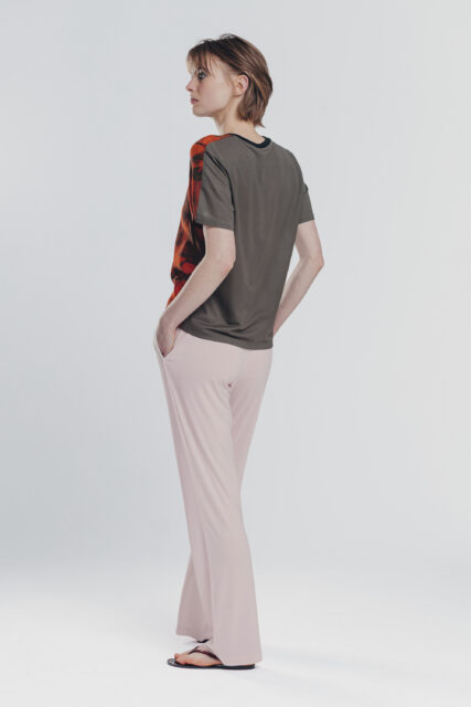 The pants are made from a very stretchy and fluid jersey fabric. Since the pants are slightly transparent, underwear should be chosen accordingly.